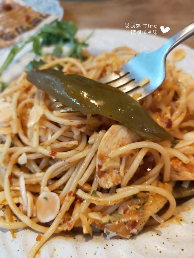 剝皮辣椒嫩雞麵-338元,中辣,吃起來我自己是覺得可以接受的辣度,而且裡面可以看到3條剝皮辣椒還有杏仁片,偶爾會有幾口吃到稍微偏鹹~但整體吃起來覺得不錯