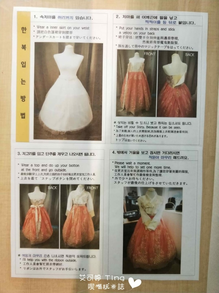 穿韓服前最好先上好廁所,不然穿韓服上廁所很費時而且也怕弄髒!!(友人的經歷)
