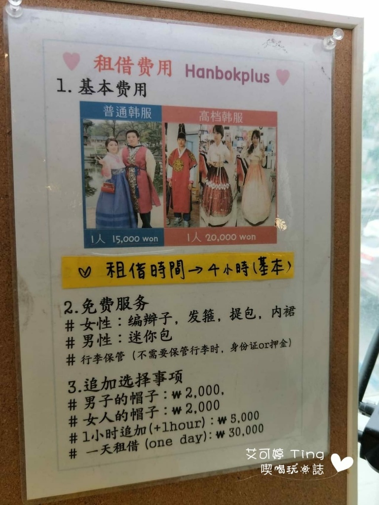 一般韓服:15000韓元/4小時 全天:30000韓元