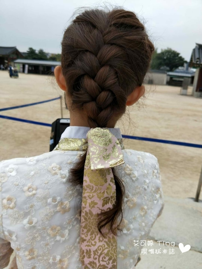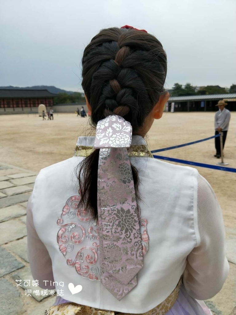 這次來體驗穿韓服,店家就有幫我們編辮子,還有提供提包,真的是不錯~因為很多人租借,所以最好提前預約~