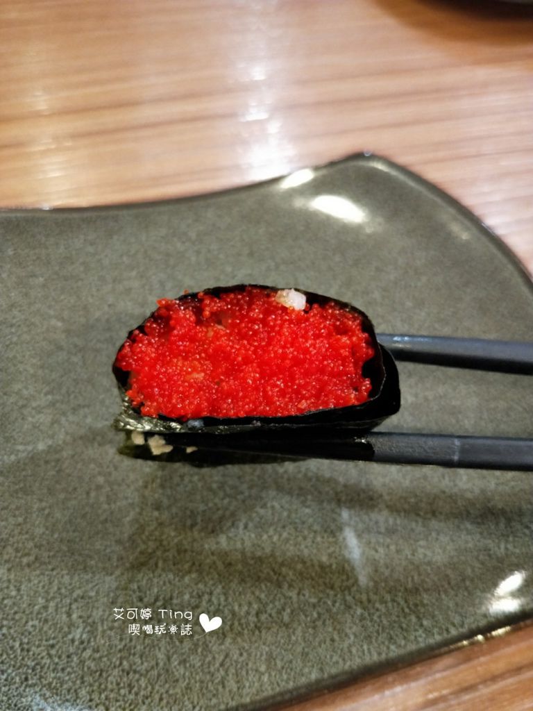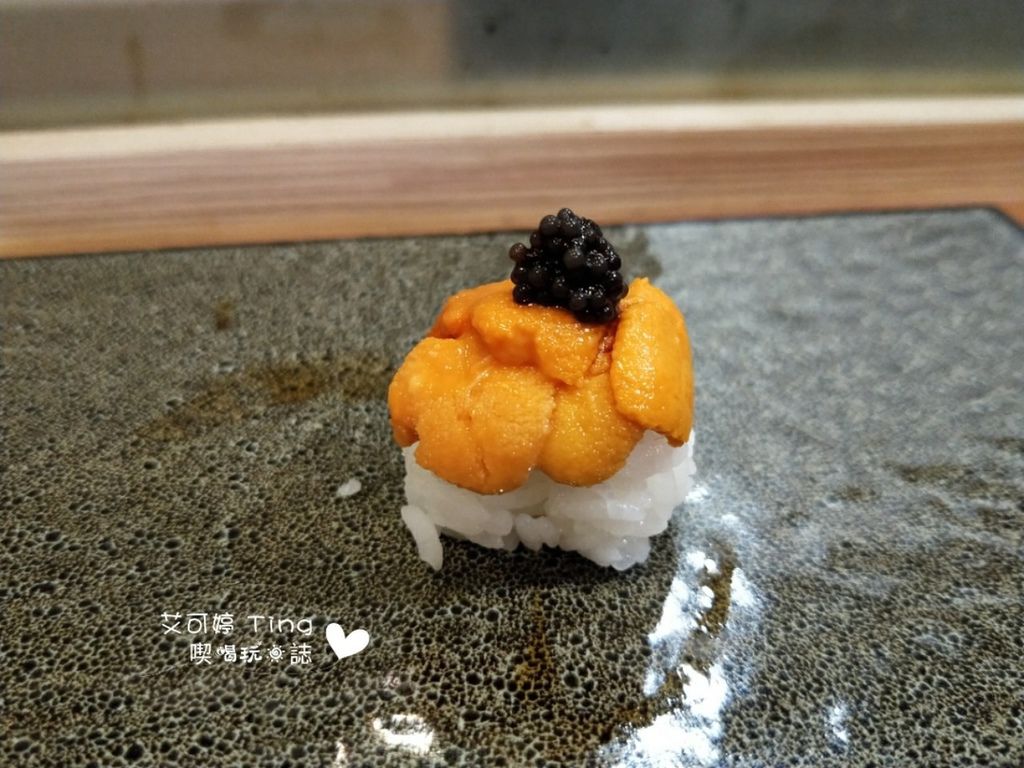 海膽魚子醬壽司,說真的我還真的沒吃過海膽,這個吃起來綿綿的,是沒什麼腥味啦