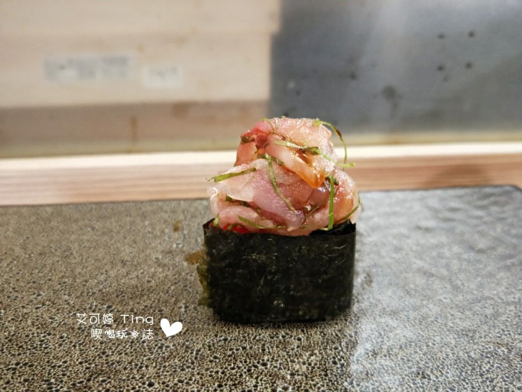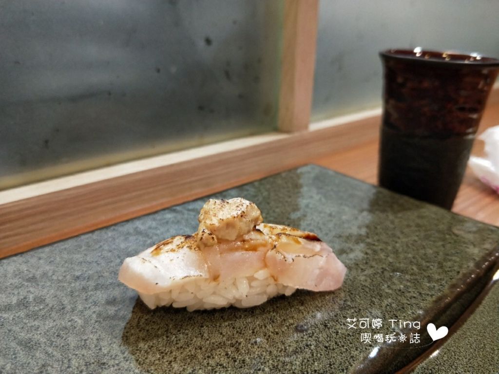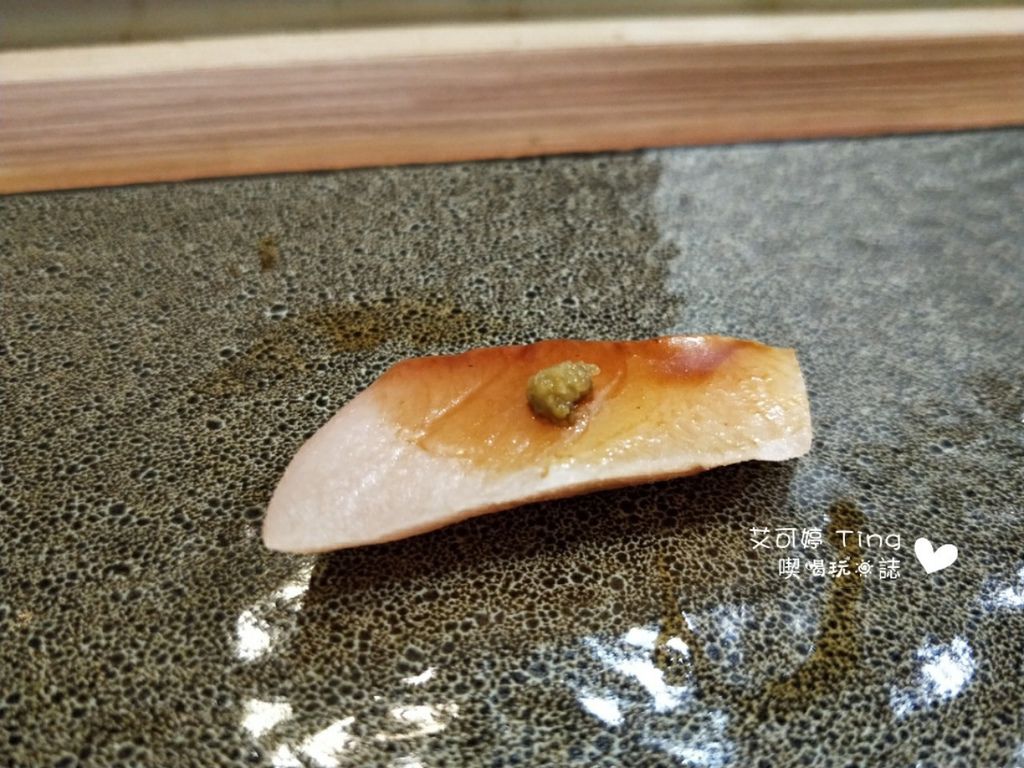 帶點炙燒過的比目魚緣側搭配著蔥花,入口後很快就化開了,去吃壽司我們也是蠻常點這道的,好吃