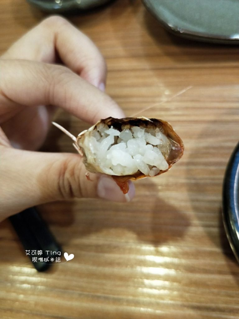 裡面還有把飯用進去,烤過後吃起來脆脆的,老闆是說可以全部吃下,我是不習慣吃這個,所以只吃一半