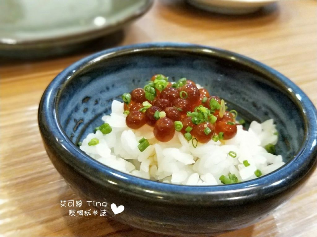 鮭魚卵飯,鮭魚卵吃起來沒有腥味,還帶點甜味,這個我可接受,最後也是吃光光