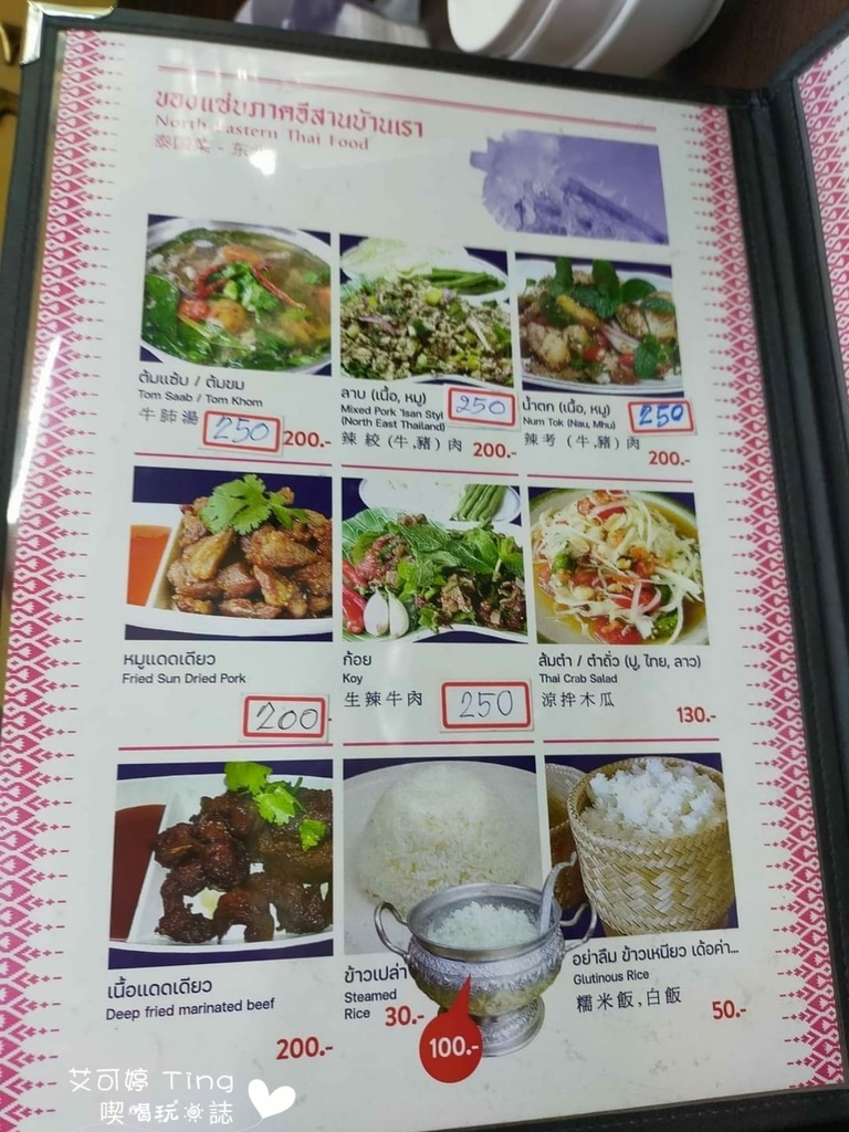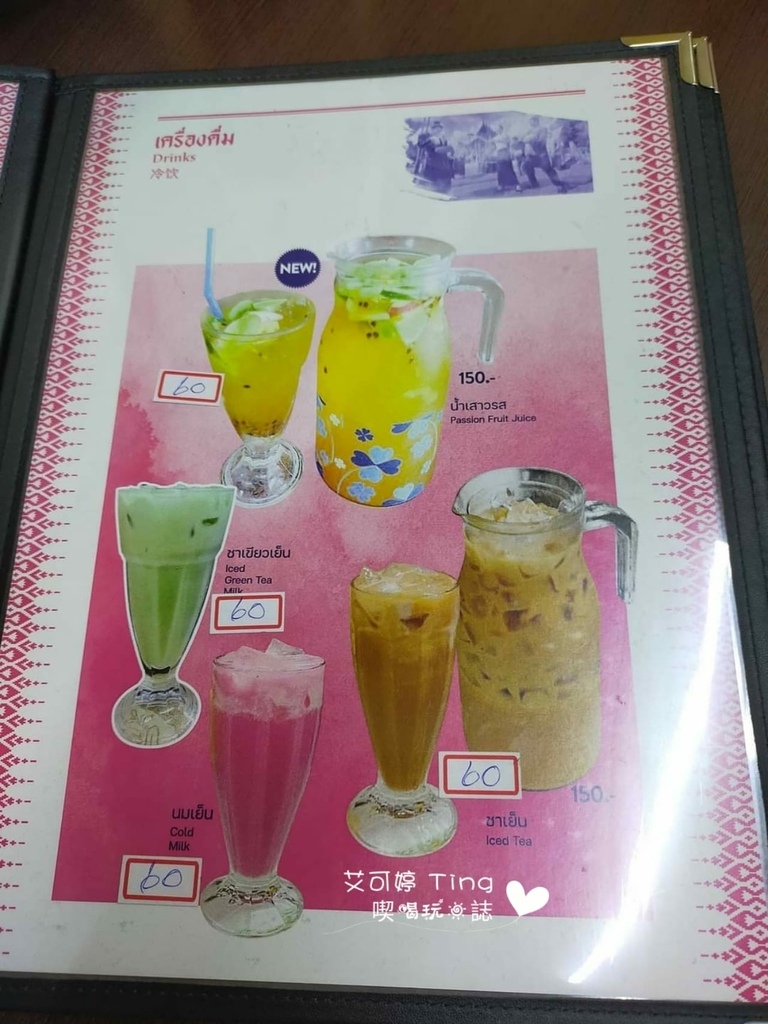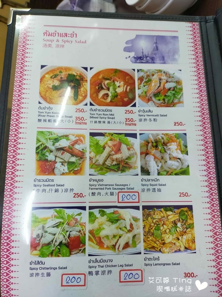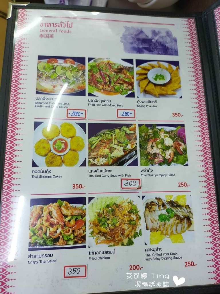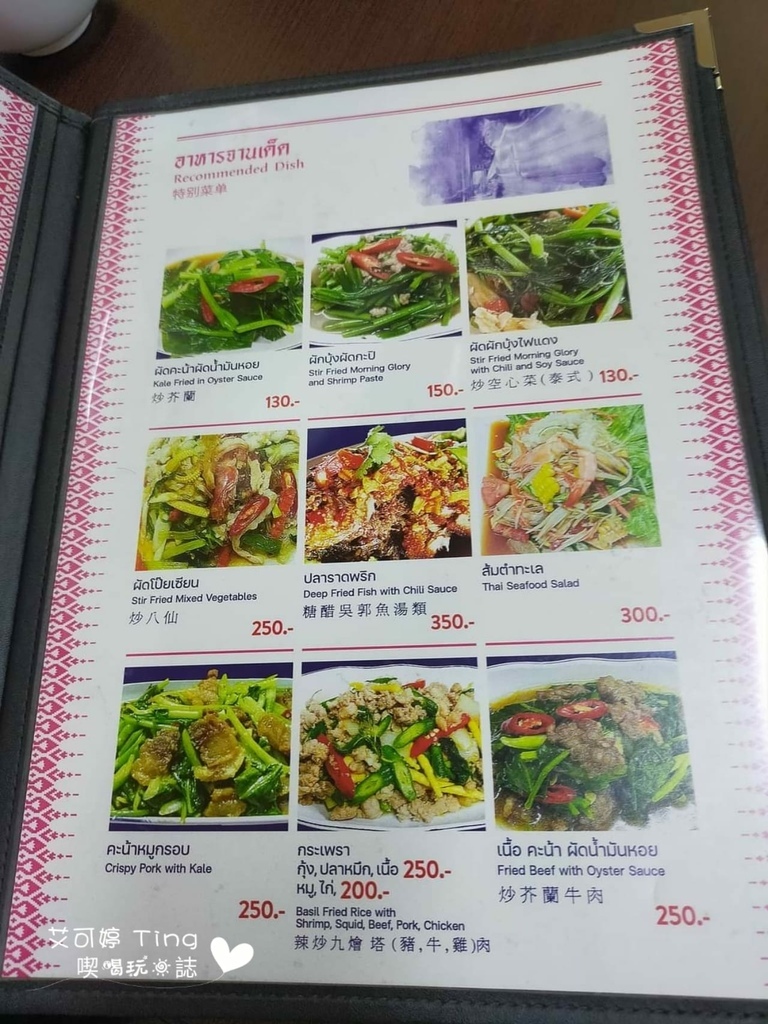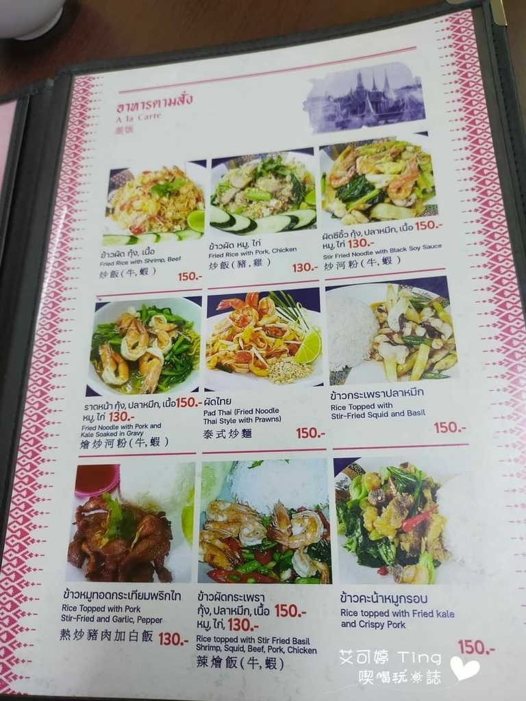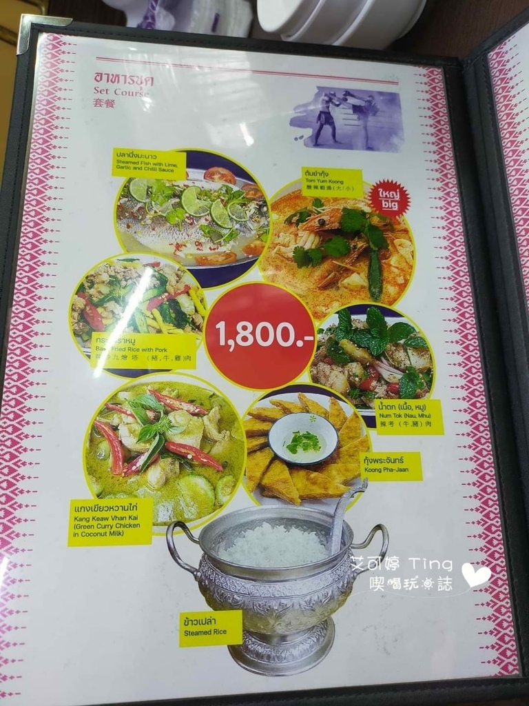 菜單全都有圖片與詳細價格,有中、英、泰文,但中文也不是全部都有,但還好還有圖片可以看,甚至還有多人一起享用的套餐