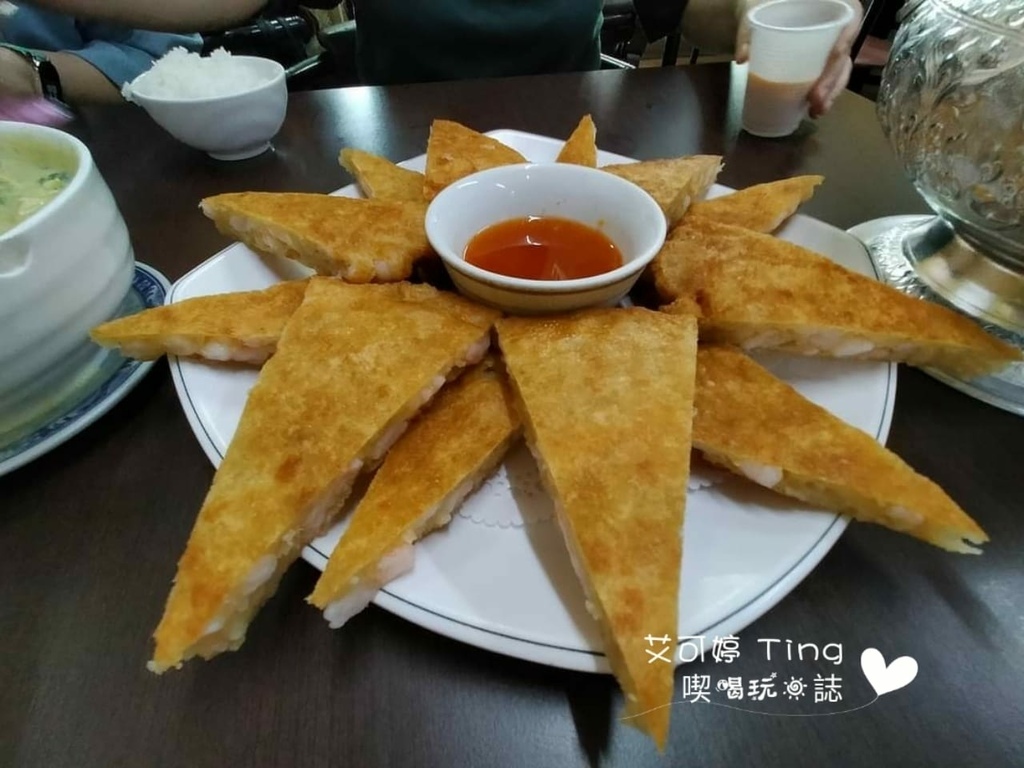 【月亮蝦餅】-350元,一上桌著實有嚇一跳,因為比起以前吃過的量還要多,而且厚度也不薄,裡面還有很多完整的蝦子