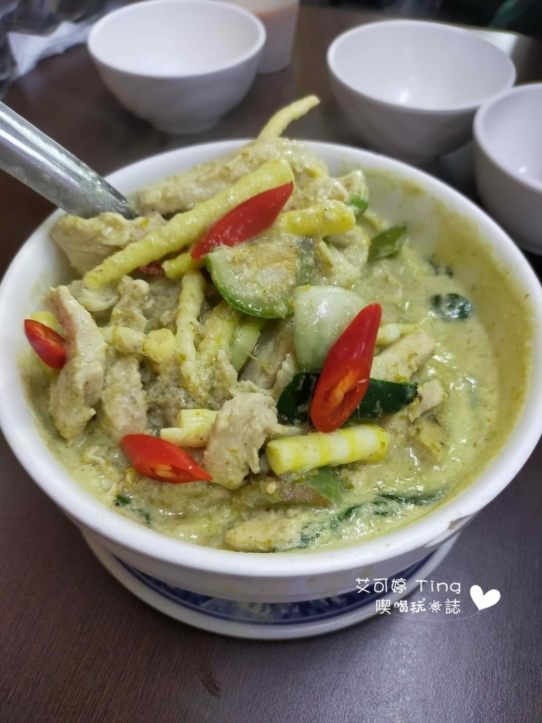 【綠咖哩雞】-250元,裡面除了雞肉,還有箭竹筍?看起來很辣,但對我來說微辣而已,超喜歡配飯吃
