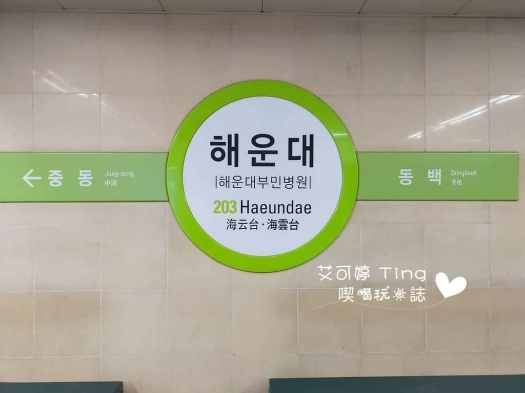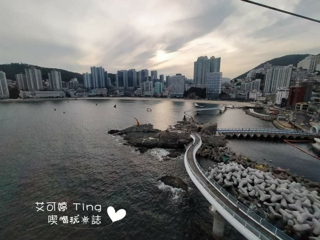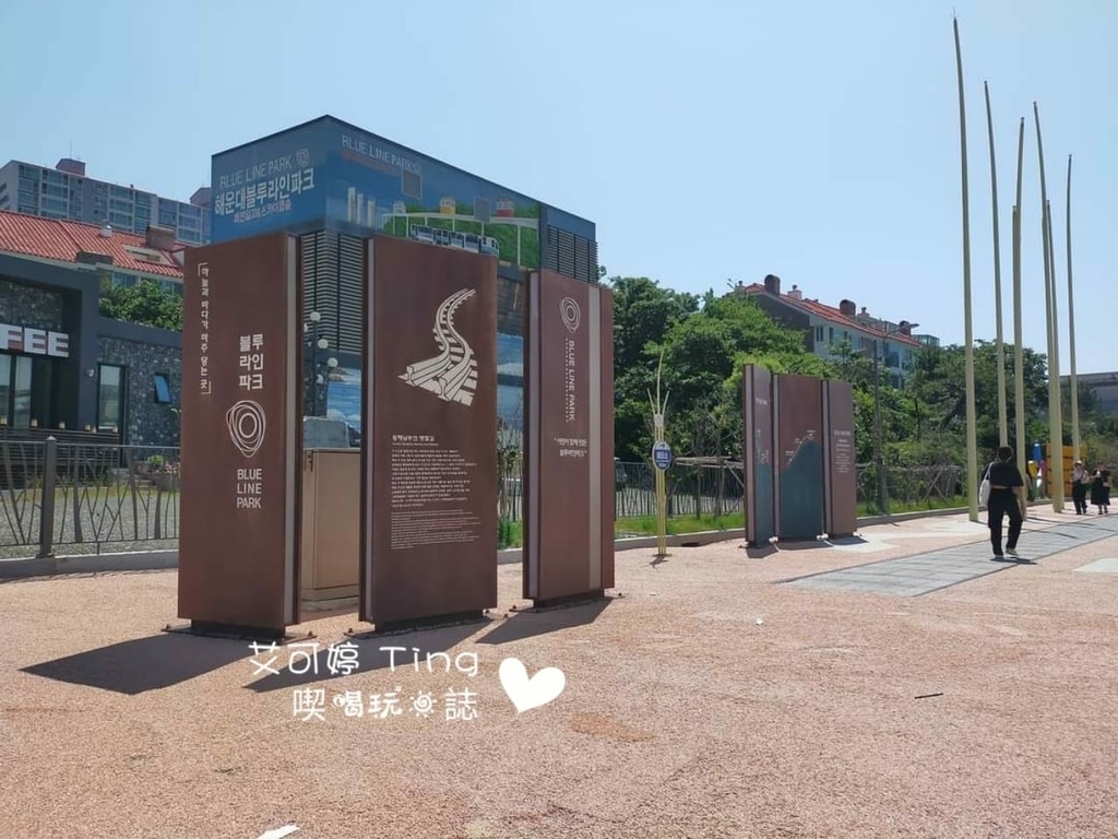 經過Busan X the Sky後,走幾步後到了路口,左轉後直走會看到極東豬肉湯飯,再繼續直走沒幾步終於看到海雲台藍線公園~