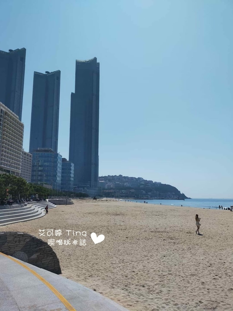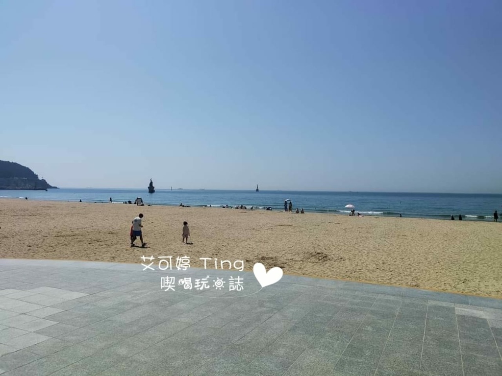 買完麵包開始走去海雲台沙灘,看看白天的景色,再慢慢走去搭乘膠囊列車的地方