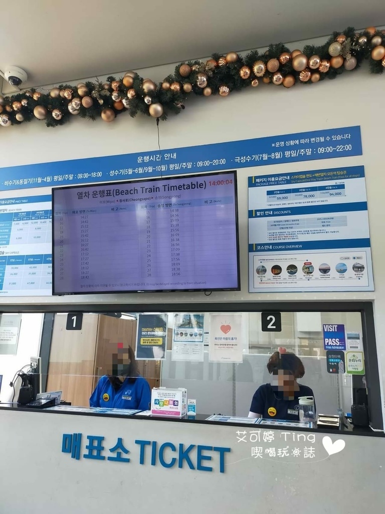 吃完午餐走回青沙浦站,準備來搭海岸列車到松亭站,使用Visit Busan Pass可以免費兌換兩次票,旁邊也有時刻表