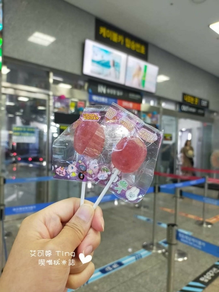 稍作休息後,搭計程車來到了松島纜車,可能平日吧,沒什麼人排隊,所以出示Visit Busan Pass後很快就拿到票,要搭乘纜車前都會給一人一支棒棒糖