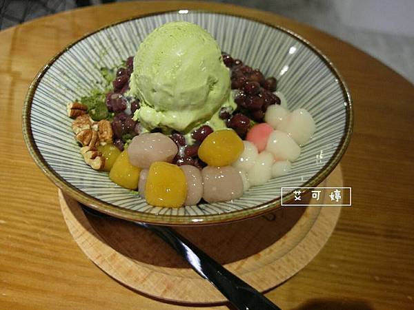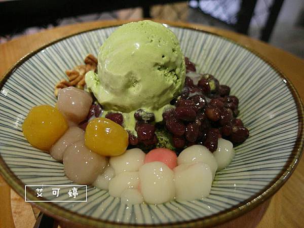 四種料佐以核桃、芋圓、湯圓、紅豆及抹茶粉