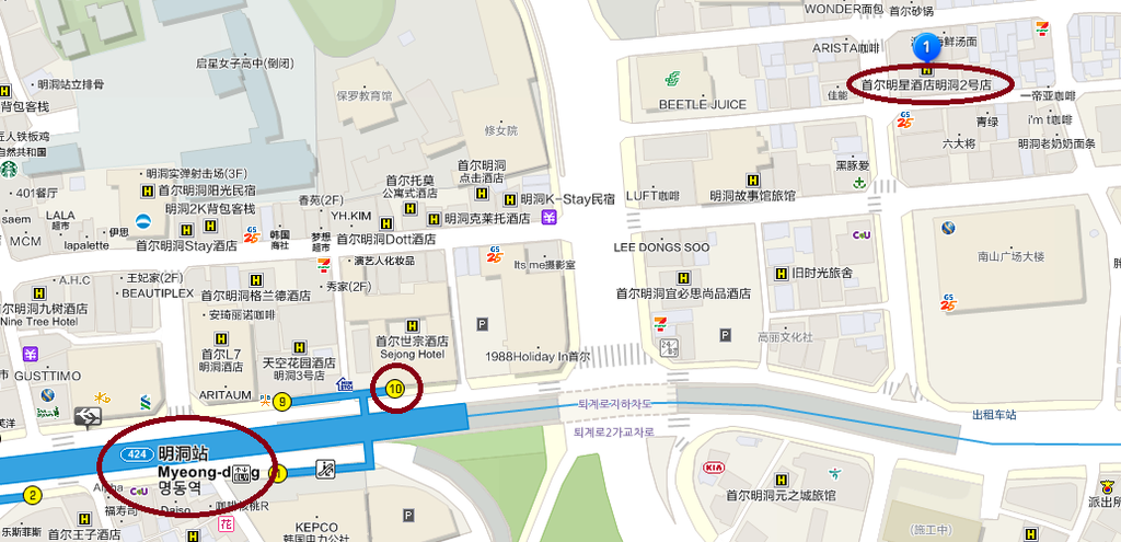我們剛好從忠武站下車,所以就邊看地圖順利走到今晚要住的飯店