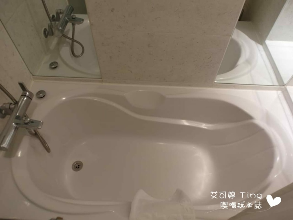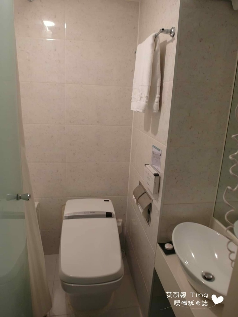 廁所在進門的左手邊,空間不大,但這間居然有浴缸,但只能站在浴缸內洗澡,不然馬桶其他地方會用到整個濕掉