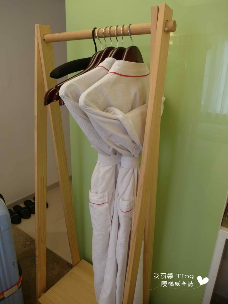 有提供衣架、水壺、杯子、礦泉水、保險箱、茶包,在門口處也有提供拖鞋,但我還是習慣穿自己帶的