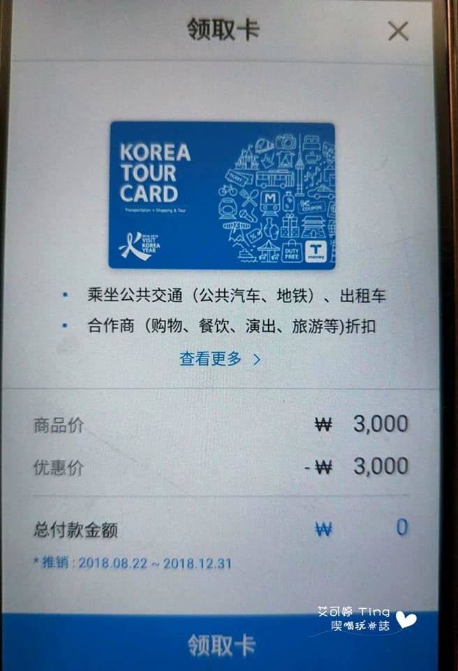 到2018年12月31日前是免費領取,到期後則需要支付3000韓元囉~之後有要去韓國旅遊的朋友可要把握機會唷