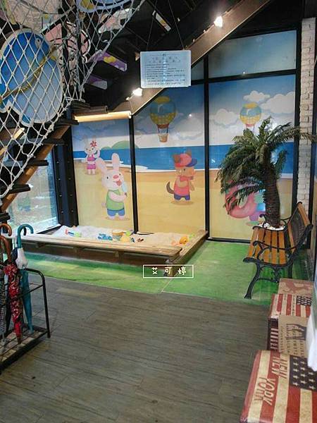 一樓上去前,樓梯後方有個玩沙池