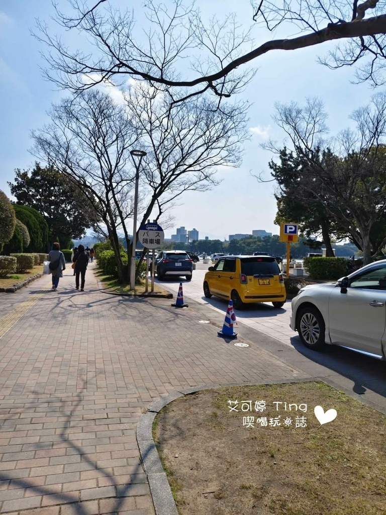 這邊有停車場,但等待停車隊伍排很長,可見來大濠公園的人真的很多