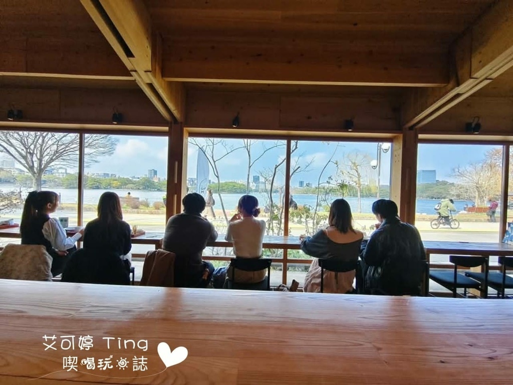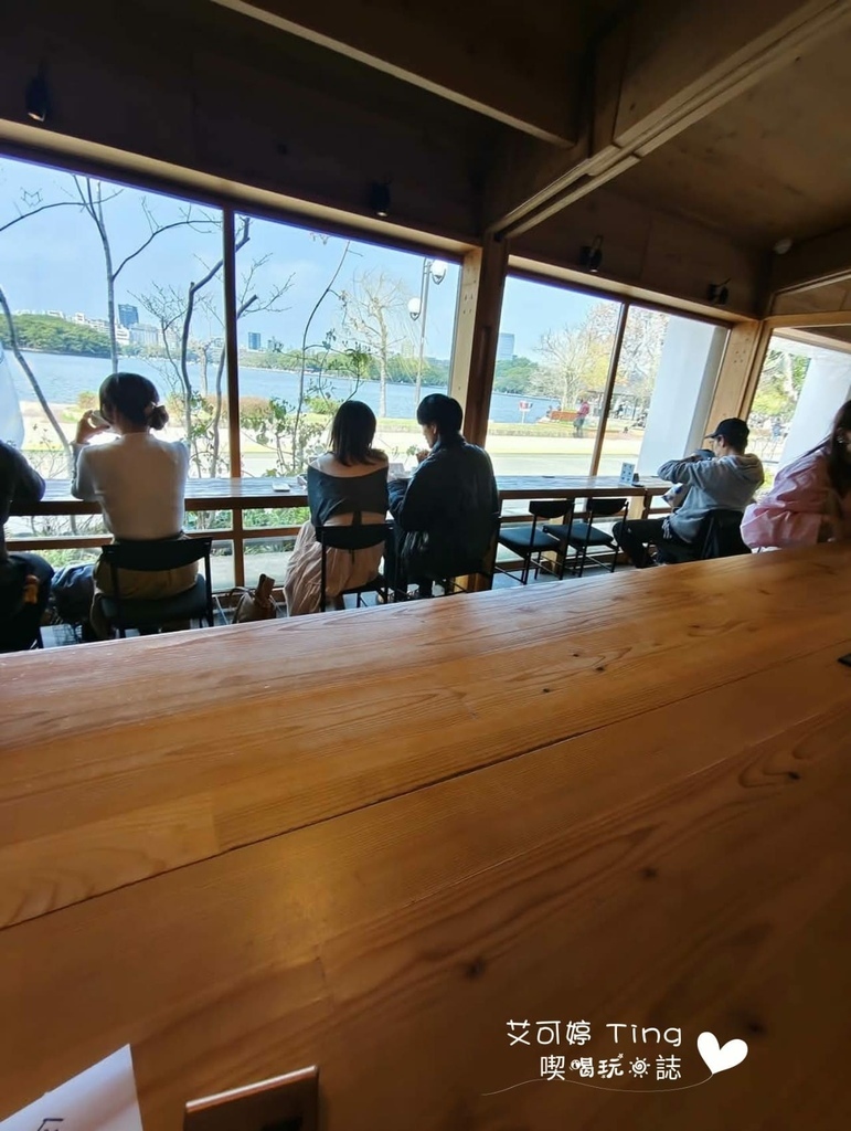 點完餐點拿號碼牌後找了個位置坐,只可惜面向湖邊的熱門位置都被坐走了,但我坐的這邊的這面也是可以看到湖,只是不是在落地窗旁