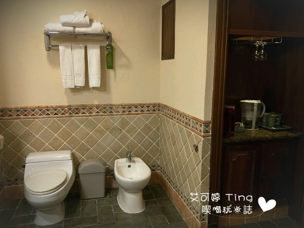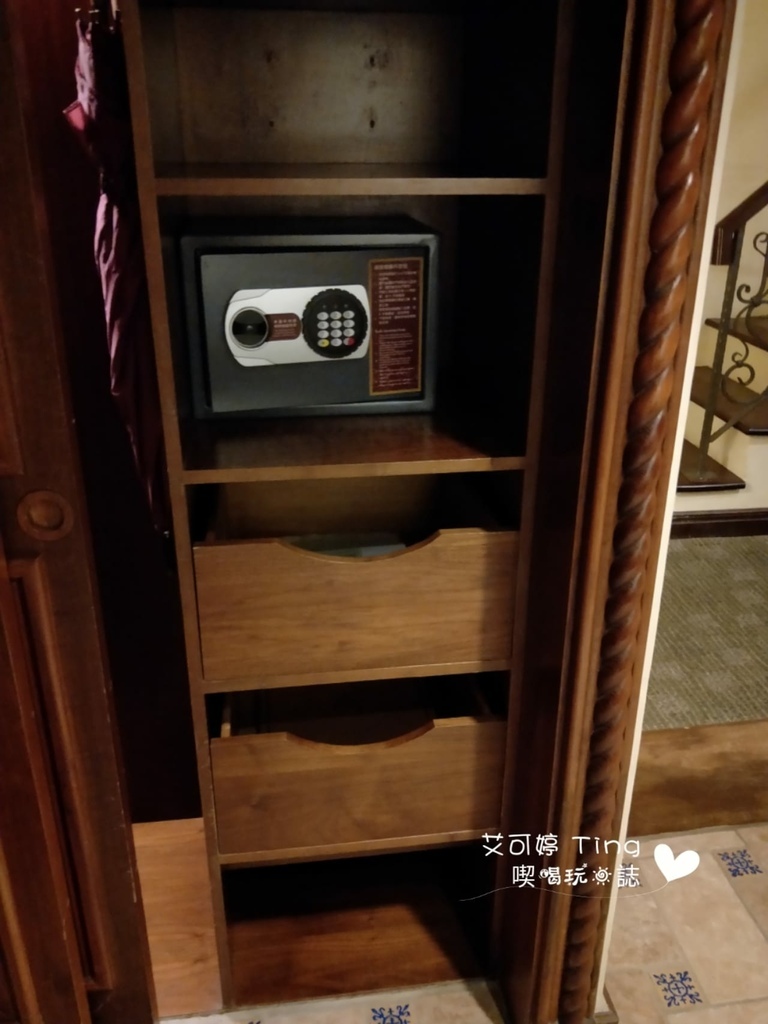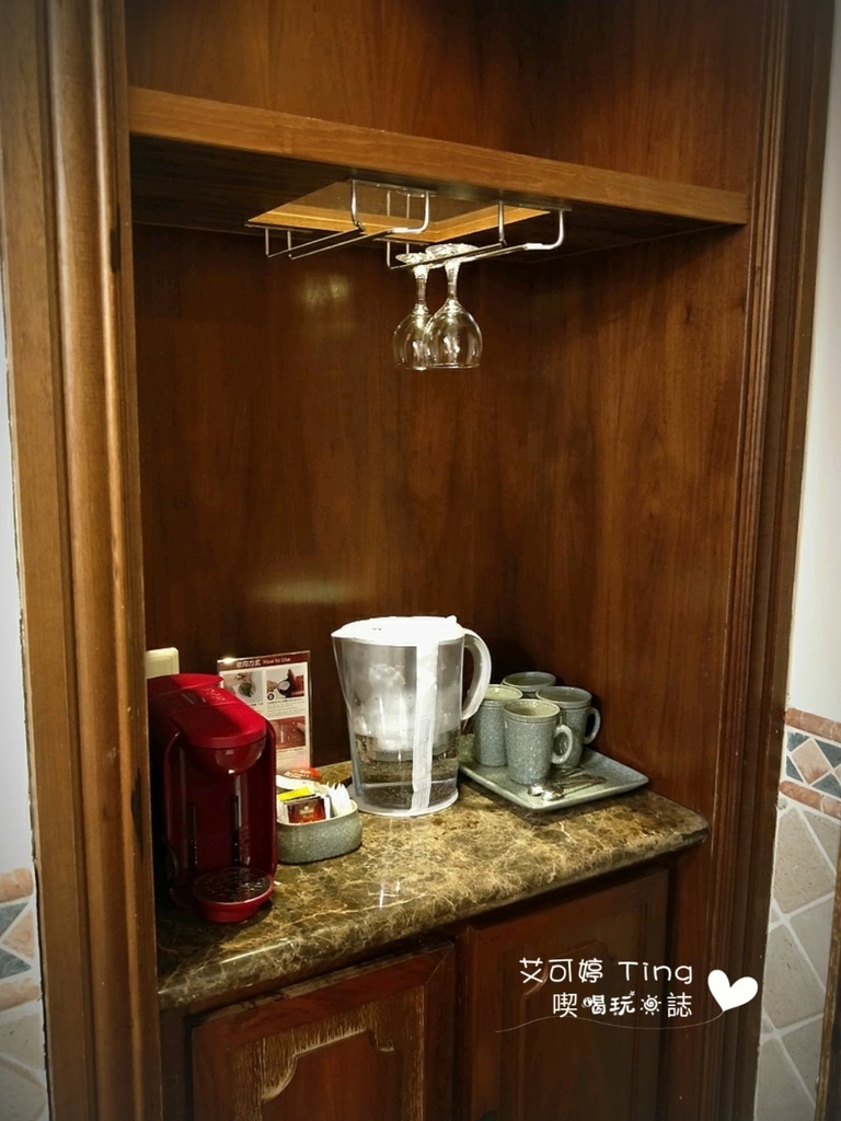讓我疑惑的是咖啡、茶包、飲用水的櫃子在廁所內,可能是讓有泡澡的房客使用