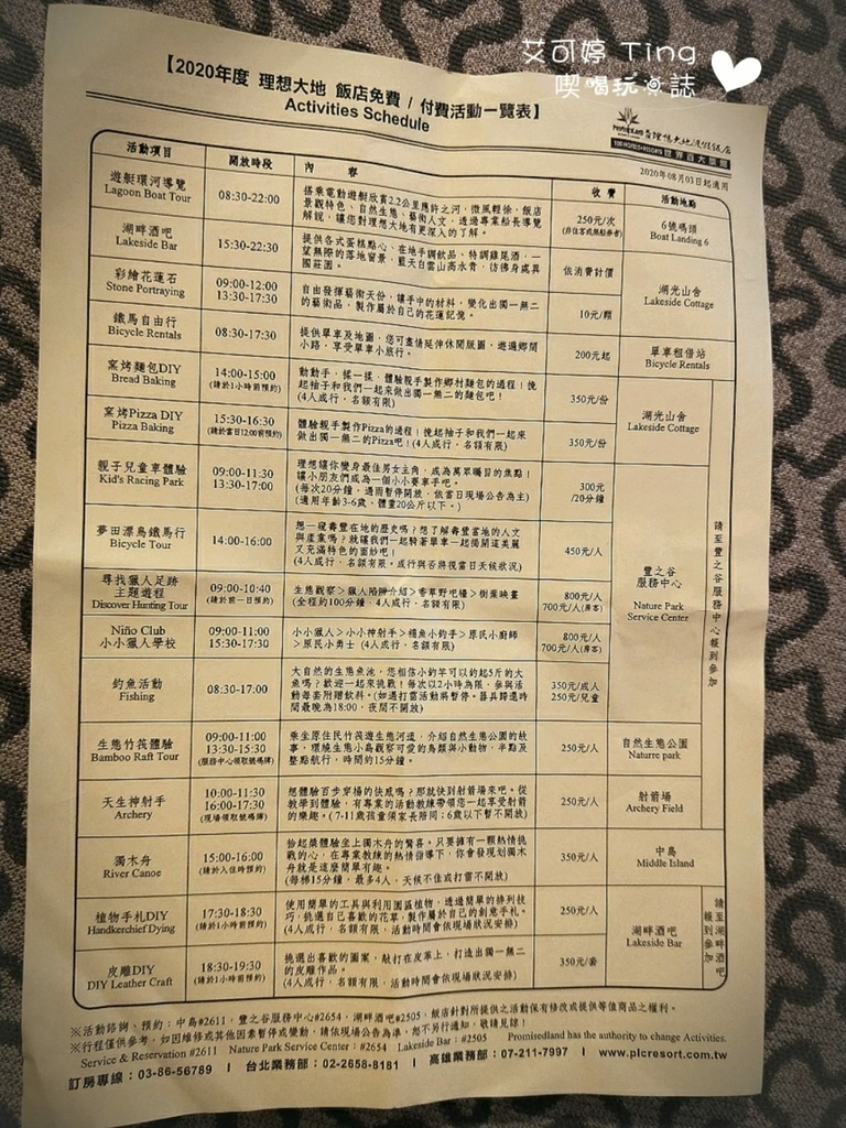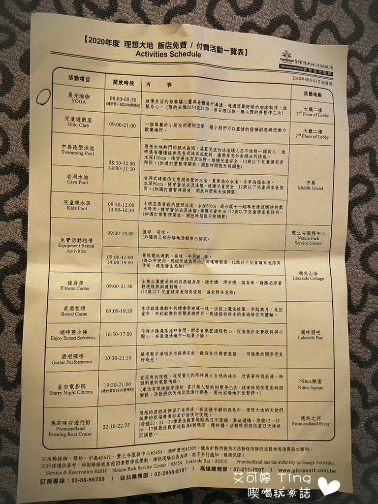 如果待在飯店不打算出去玩,可以參考飯店內免費/付費的活動