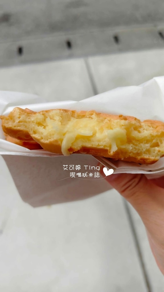 點了紅芋及起司口味,雞蛋糕蠻大一個的,剛起鍋的起司口味,趁熱吃可以拉絲,吃起來味道還OK,