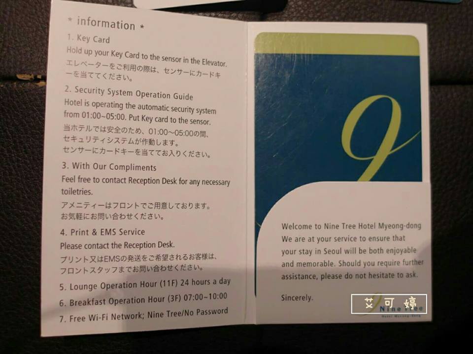check in 完畢拿到的房卡及提醒退房時間為12:00