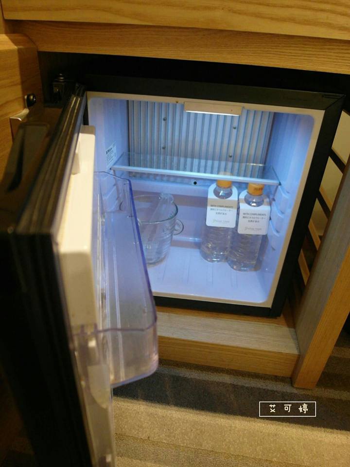 桌子下方提供冰箱,入住第一天會提供免費的水兩瓶,隔天好像就只會提供一瓶