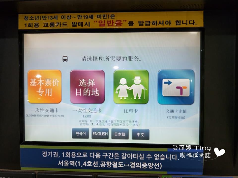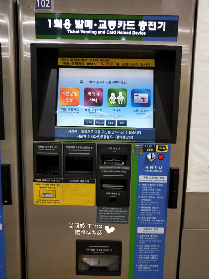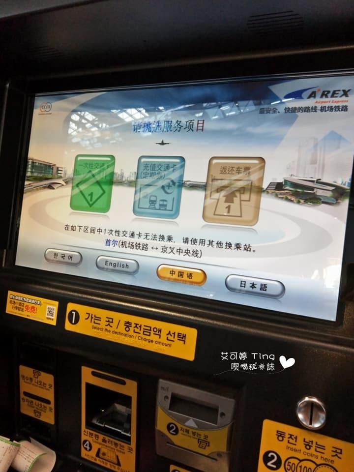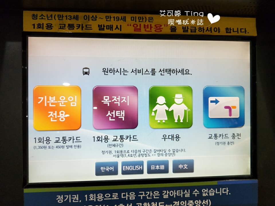 1) 購買單程票或加值,可在儲值機畫面上選擇語言(中英日韓)