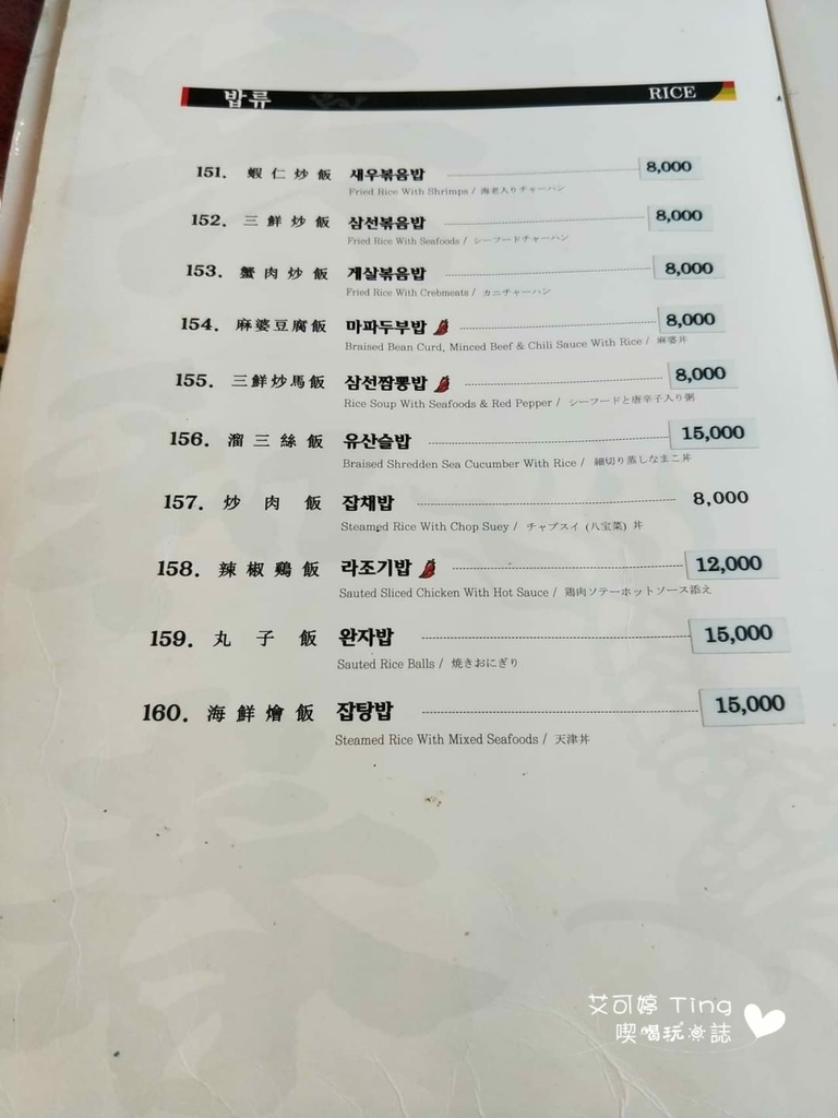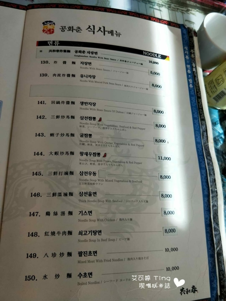 我們點了炸醬麵(자장면)-5000韓元 及三鮮炒馬麵(삼선짬뽕)-8000韓元