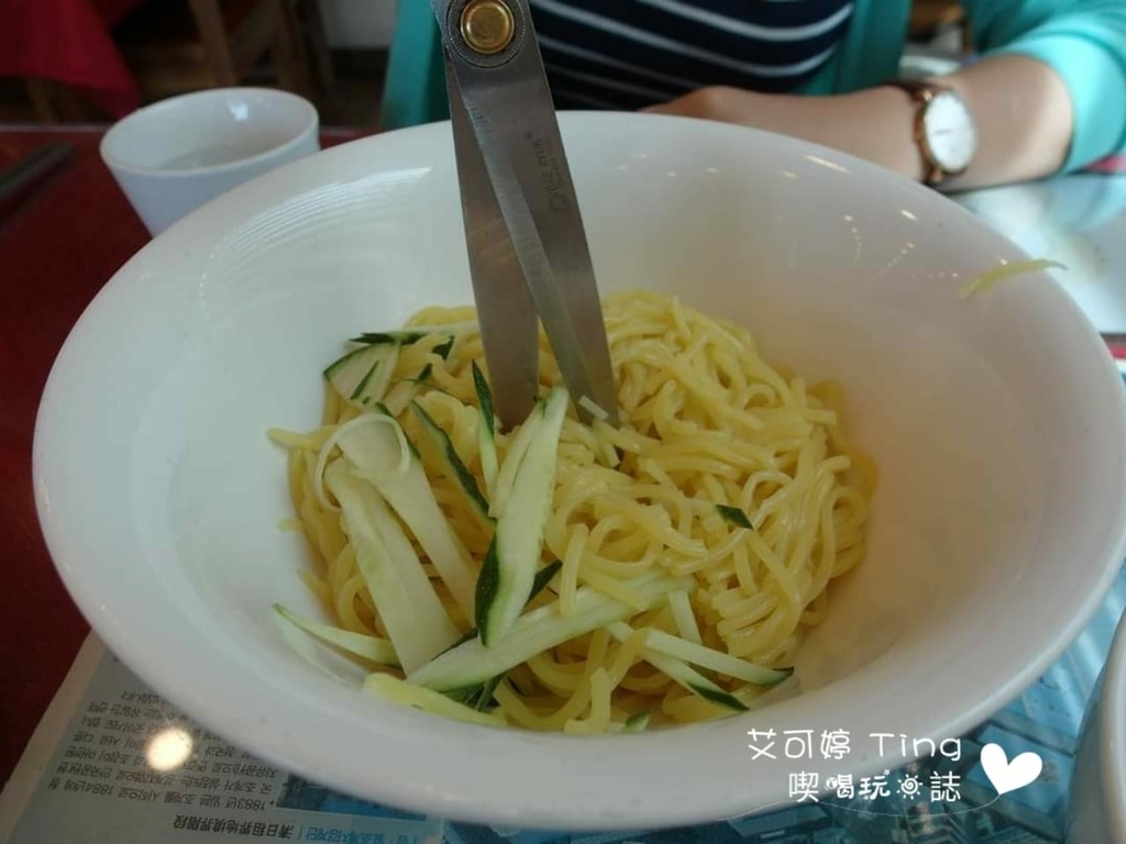 然後分著吃,炸醬麵上桌時麵跟醬是分開放的