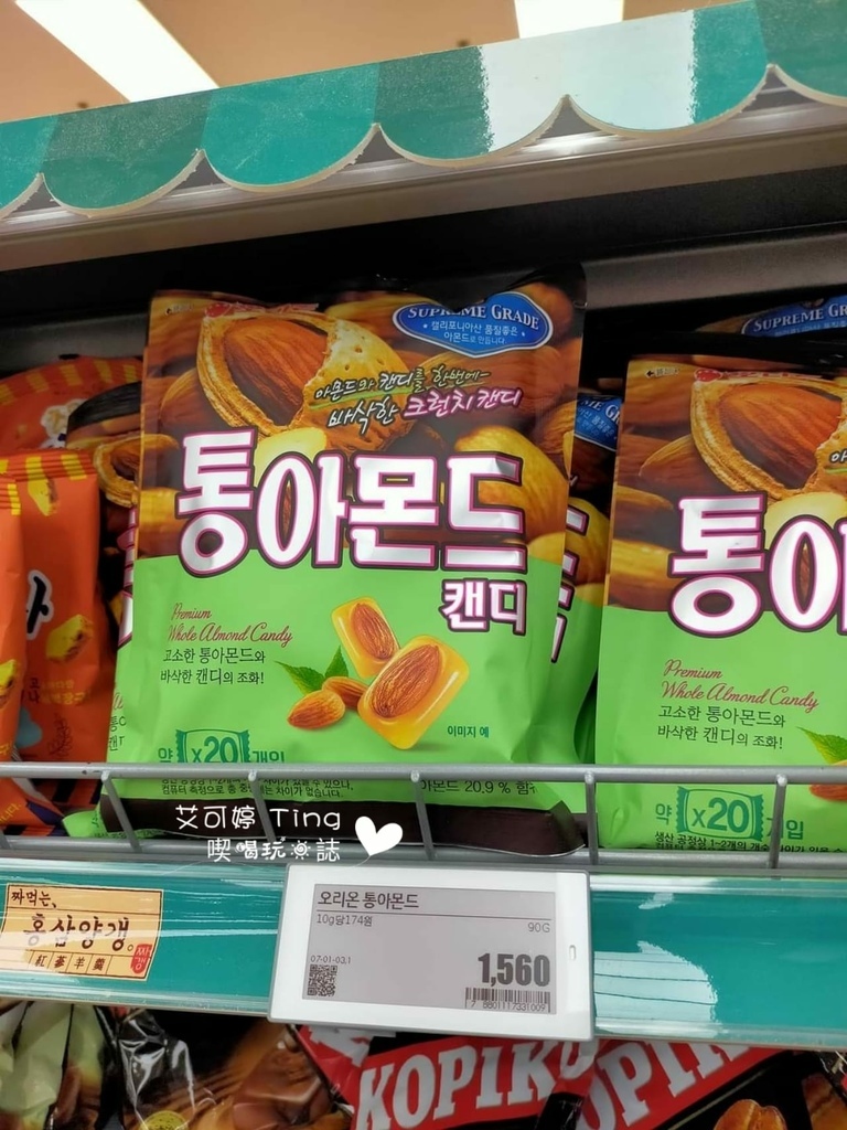 【통아몬드】-1560韓元,杏仁牛奶糖是有次朋友覺得好吃後,吃完也覺得不錯