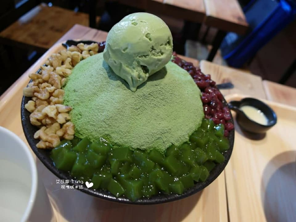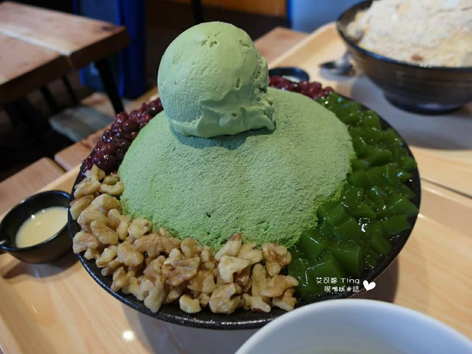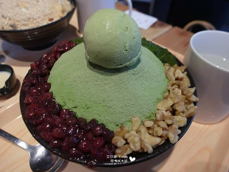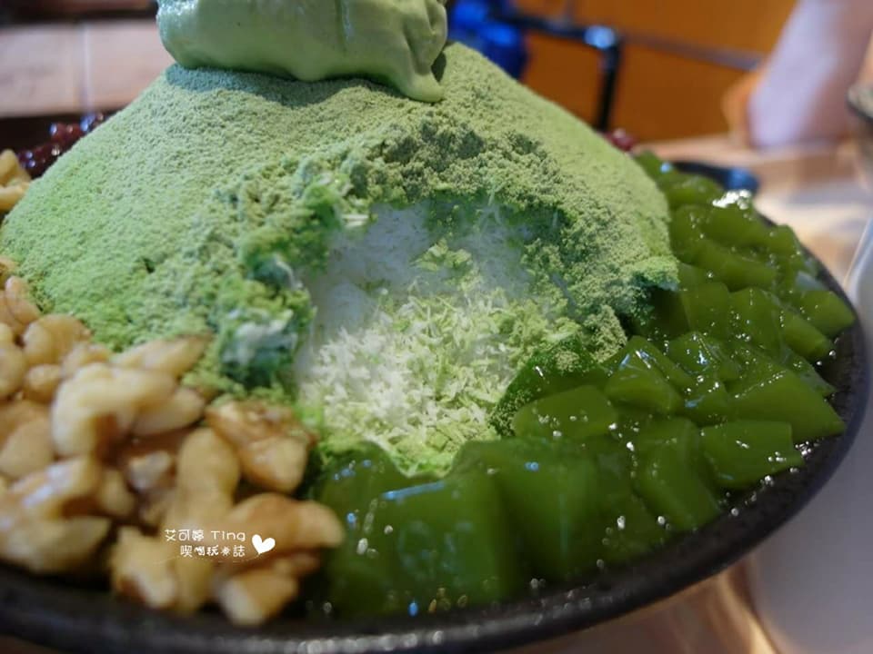 用日式抹茶粉與日本濱佐園靜岡抹茶粉製作的抹茶凍,再配上核果、蜜紅豆及抹茶冰淇淋