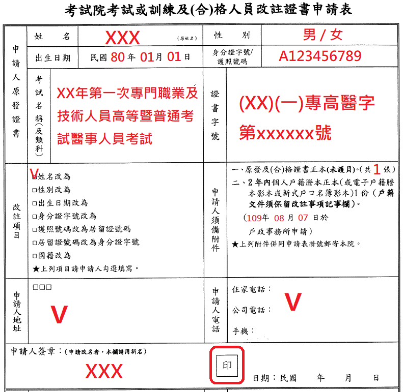 ★在申辦醫事人員證書前要至考試院更註後才可辦理