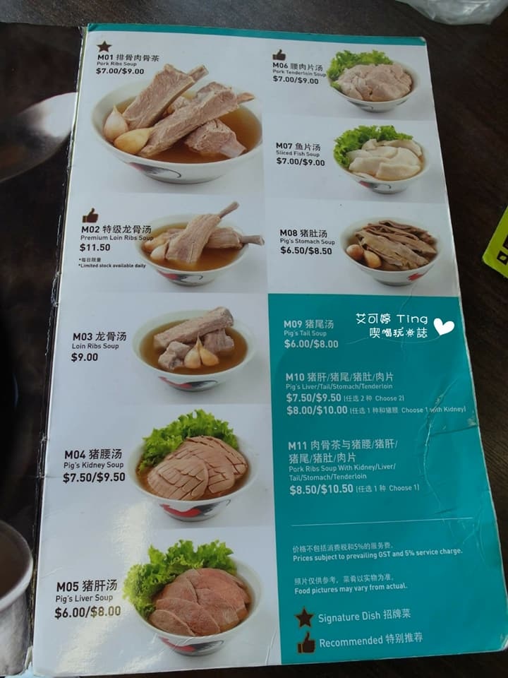 【排骨肉骨茶 Pork Ribs Soup】- 新幣 7,大碗的話是新幣 9