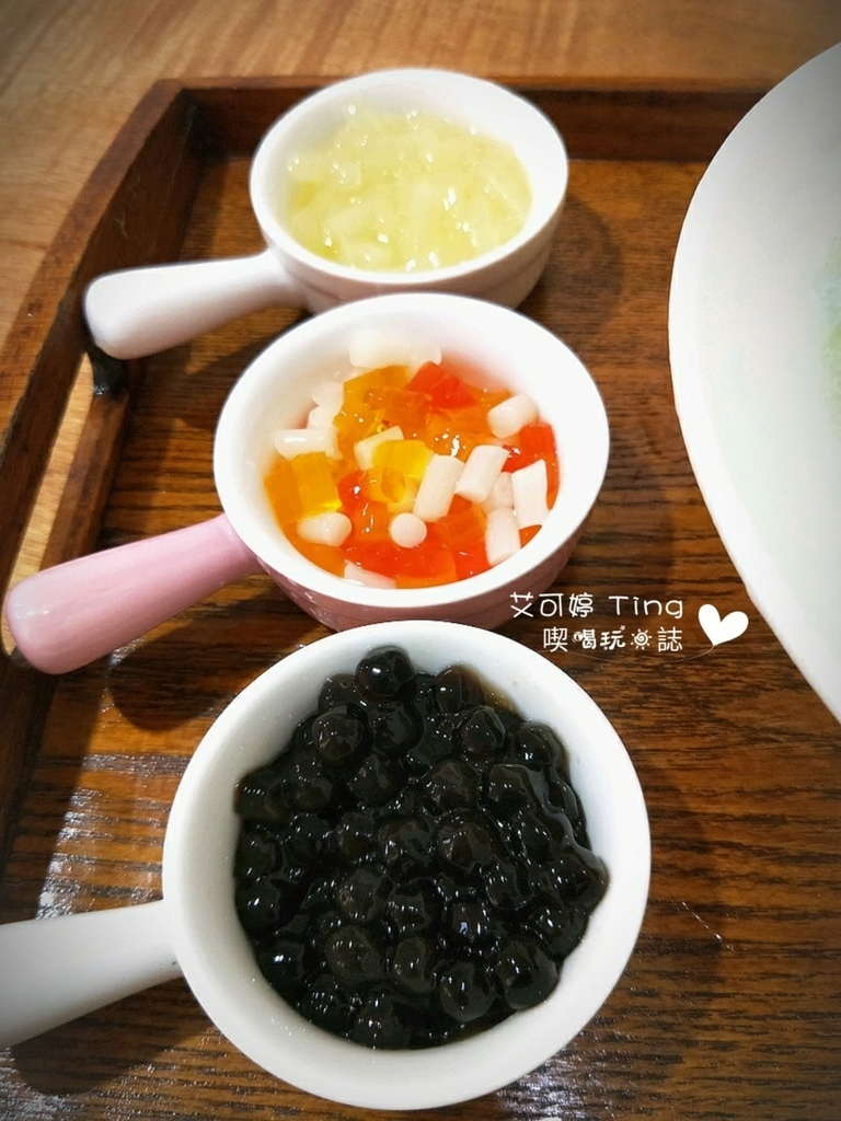 附三種配料黑糖珍珠、鳳梨椰果、三色椰果,