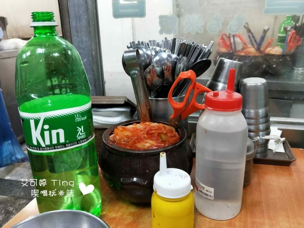 每張桌子都會提供一甕的泡菜(附剪刀)、開水、餐具