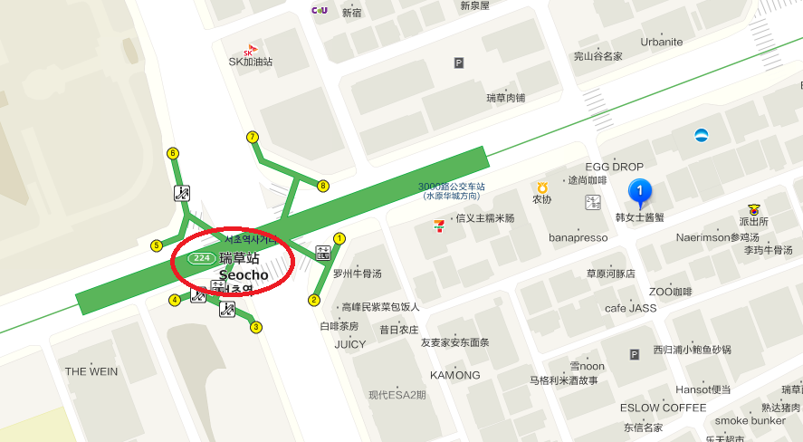 地鐵:2號線 224【瑞草站 서초역】1號出口