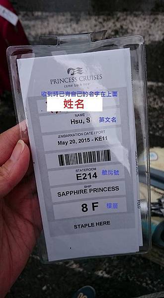 船卡登船時會取得,此卡非常重要,在航行期間如同身分證!須妥善保管,並隨身攜帶!