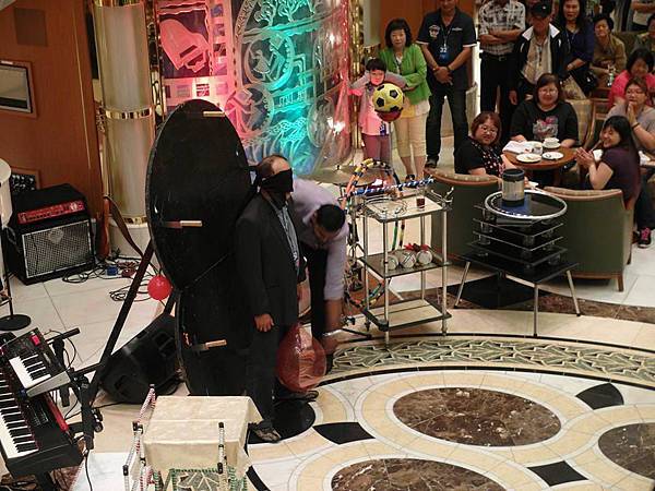 確認過後就被蒙眼了,最後都是表演者有做動作,然而他的助理再把汽球給刺破這樣!