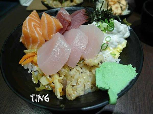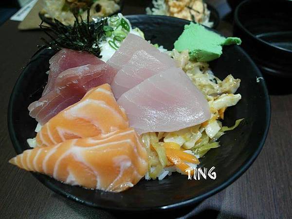 我點的什錦魚丼(綜合刺身+小菜)-180元