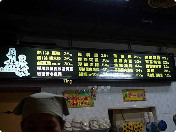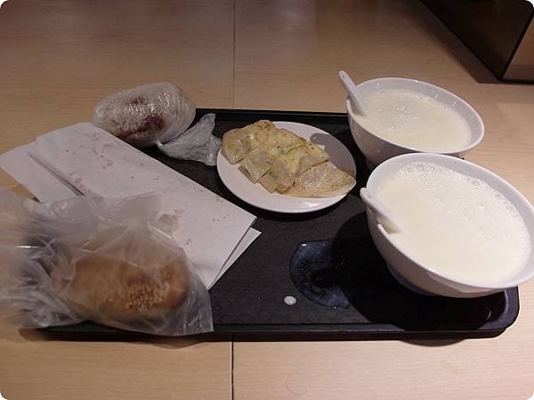 我們點了兩碗豆漿、蛋餅、飯糰、一個忘記了