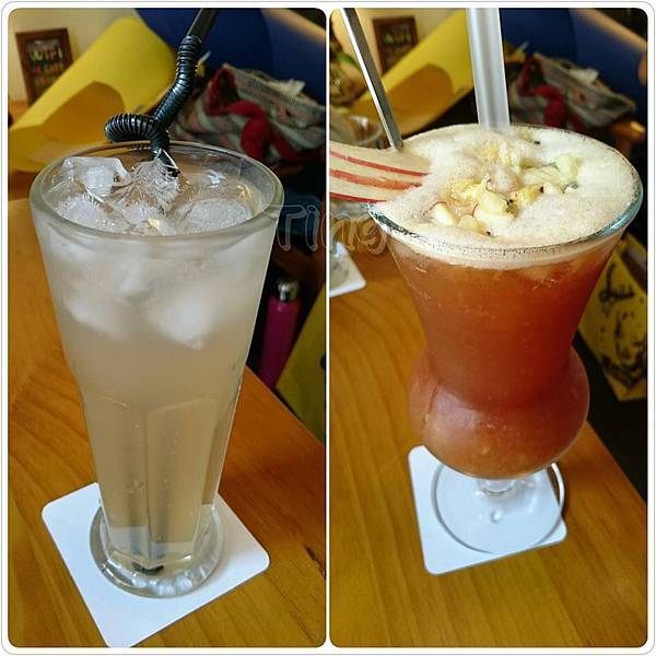 右:自製手工水果茶(綜合)冰-150元(裡面有切小小塊的水果)