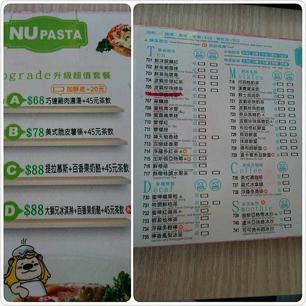 這次選了68元升級套餐(巧達雞肉濃湯+45元飲品)