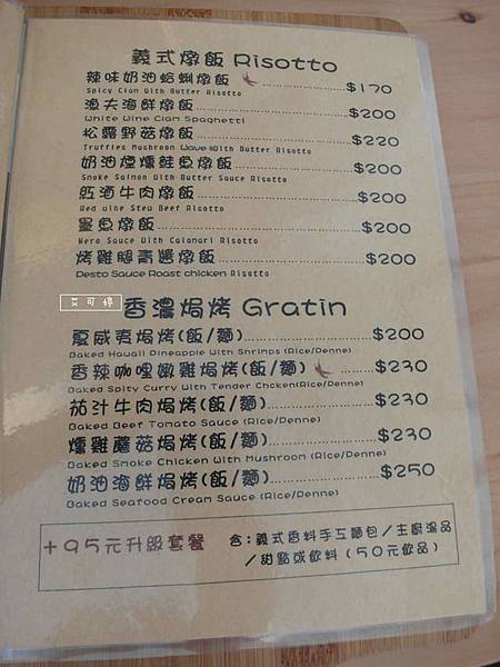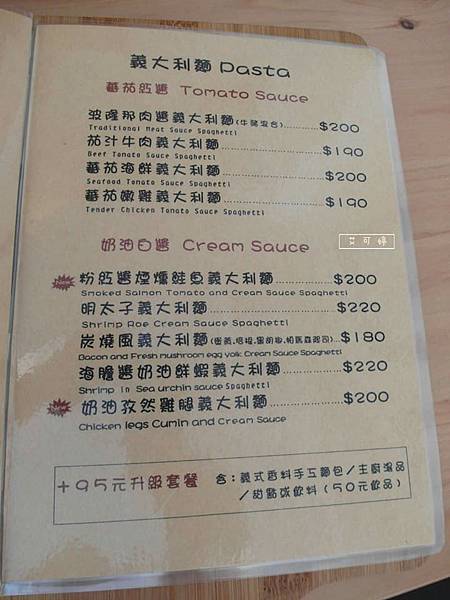 (升級套餐只要NT.95,就有義式香料手工麵包、主廚湯品、甜品或飲料(50元飲品))