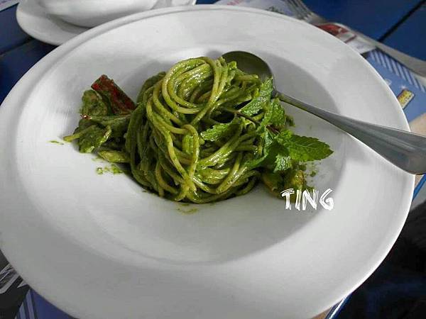 不像一般的義大利麵,店員說這道義大利麵吃起來會比較油一些,因為製作的方法較不同。