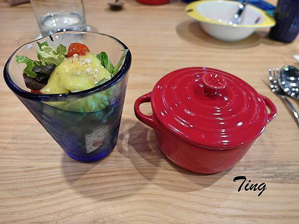 沙拉:上面的醬酸酸甜甜的,不錯吃