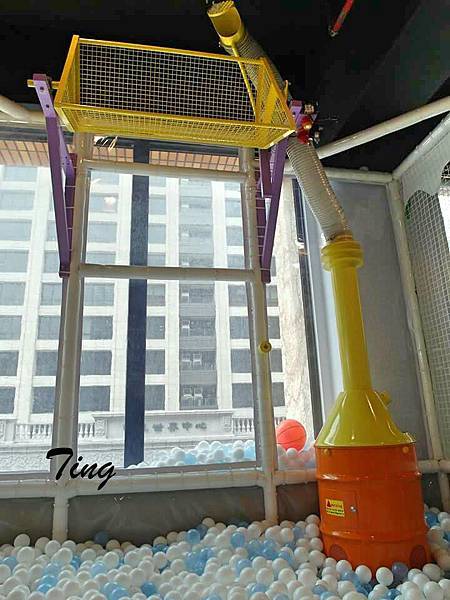旁邊有口會把小球往上吸,看小朋友什麼時候要把球給像怪手那樣給丟下來