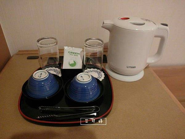 熱水壺、杯子、茶包等
