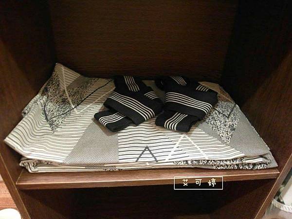 櫃子有摺好的浴衣及汙衣袋